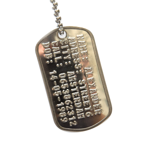 Identiteitsplaatje Nederland produceert topkwaliteit identiteitsplaatjes en Dog Tags.